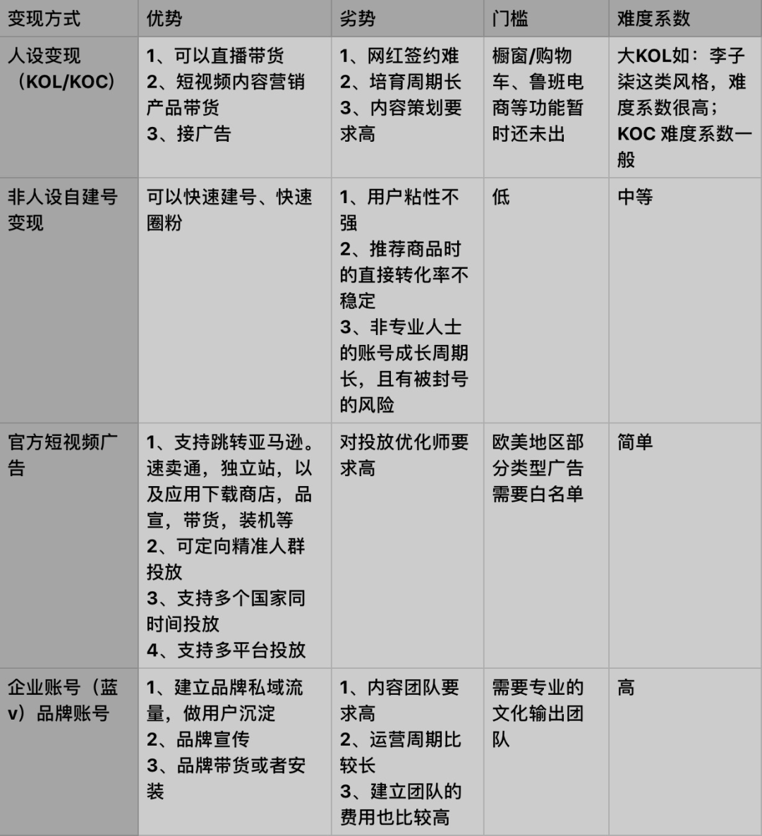 “橱窗、购物车、Dou+以及鲁班电商等功能目前尚未在TikTok推出,因此,现阶段对于采用KOL变现的跨境卖家来说是一个巨大的机会。”胡煜称。