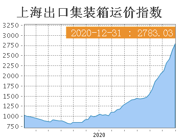 2020年4月以来,上海出口集装箱运价指数从最低时期的818飙升至2783,上涨三倍多,成为2009年该指数编制以来的最高点。在这其中,两条中美航线的价格涨幅最大,影响也更深远。
